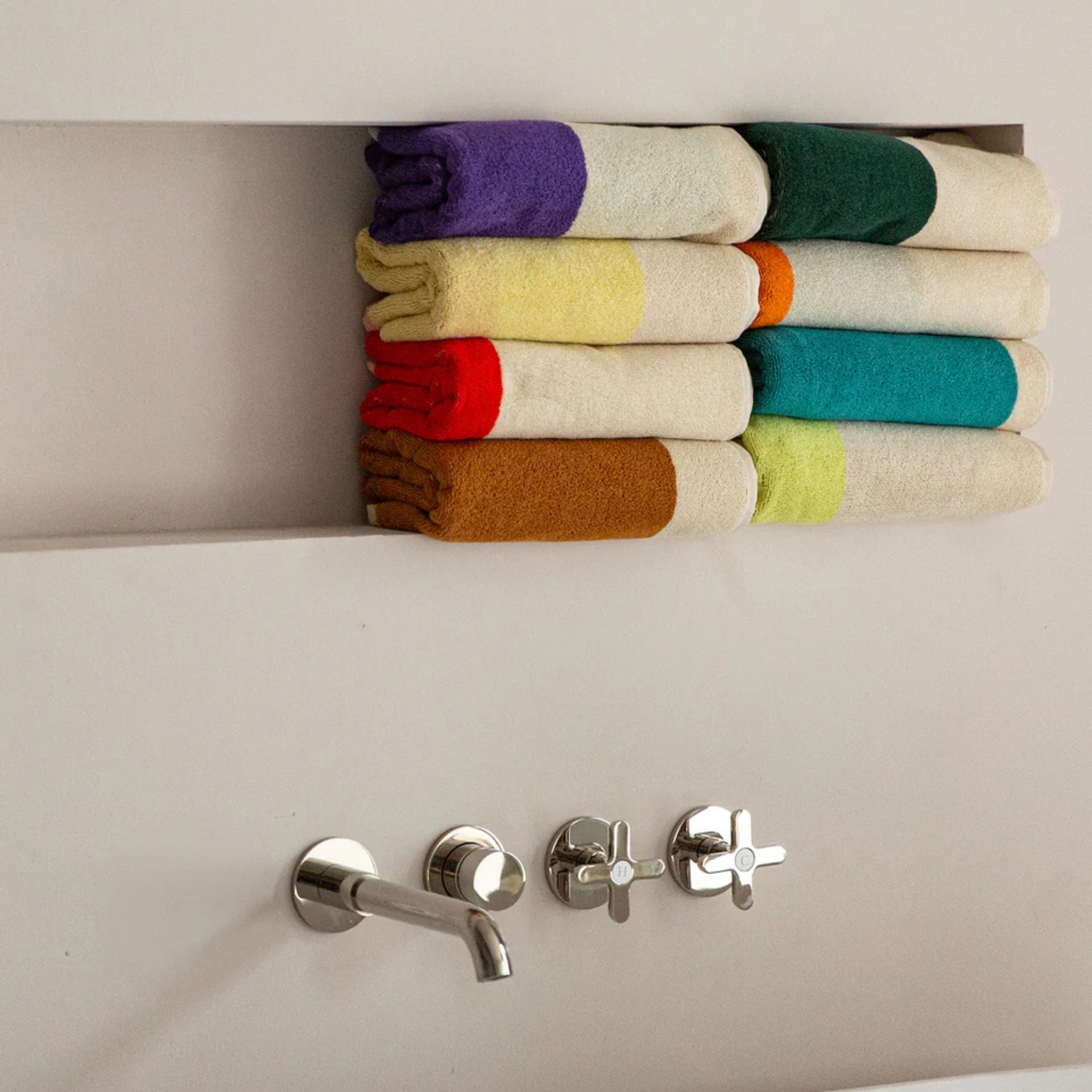 Het ontwerp is gebaseerd op het kunstproject Colors on the Beach, wat de handdoek een artistieke en praktische toevoeging maakt aan elke badkamer.