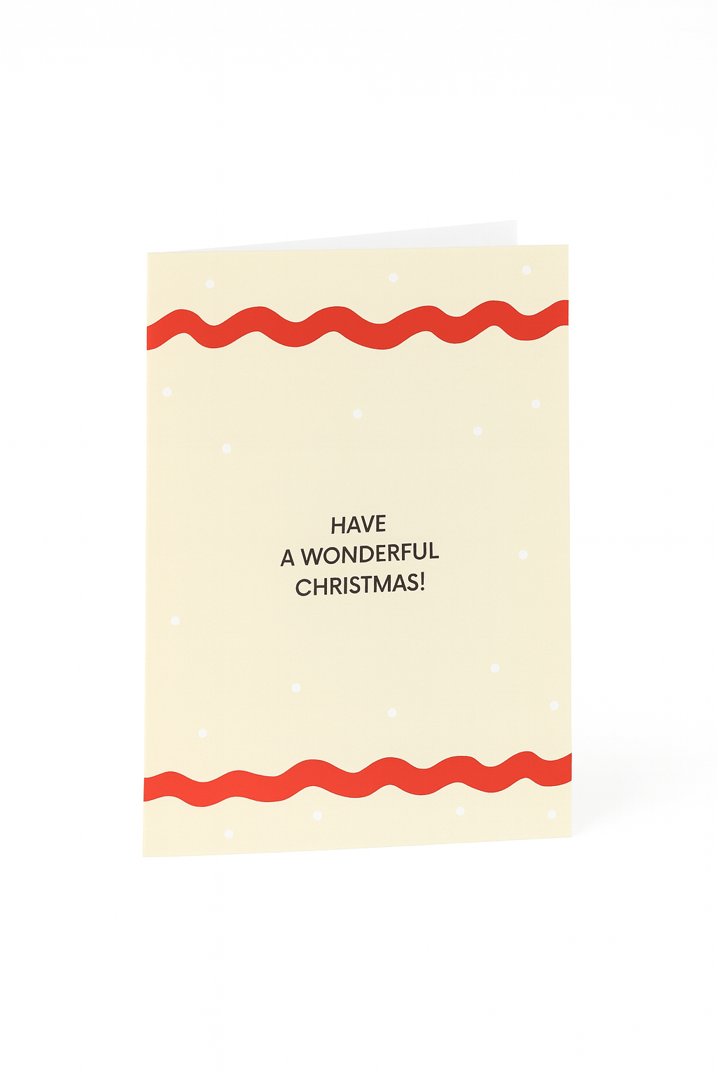 Deze kerstkaart uit de Matriks-collectie werd ontworpen door Julie Lindekens en draagt de warme kerstboodschap “Have a Wonderful Christmas!”. Een sfeervolle wens die perfect past bij de gezellige eindejaarsperiode.