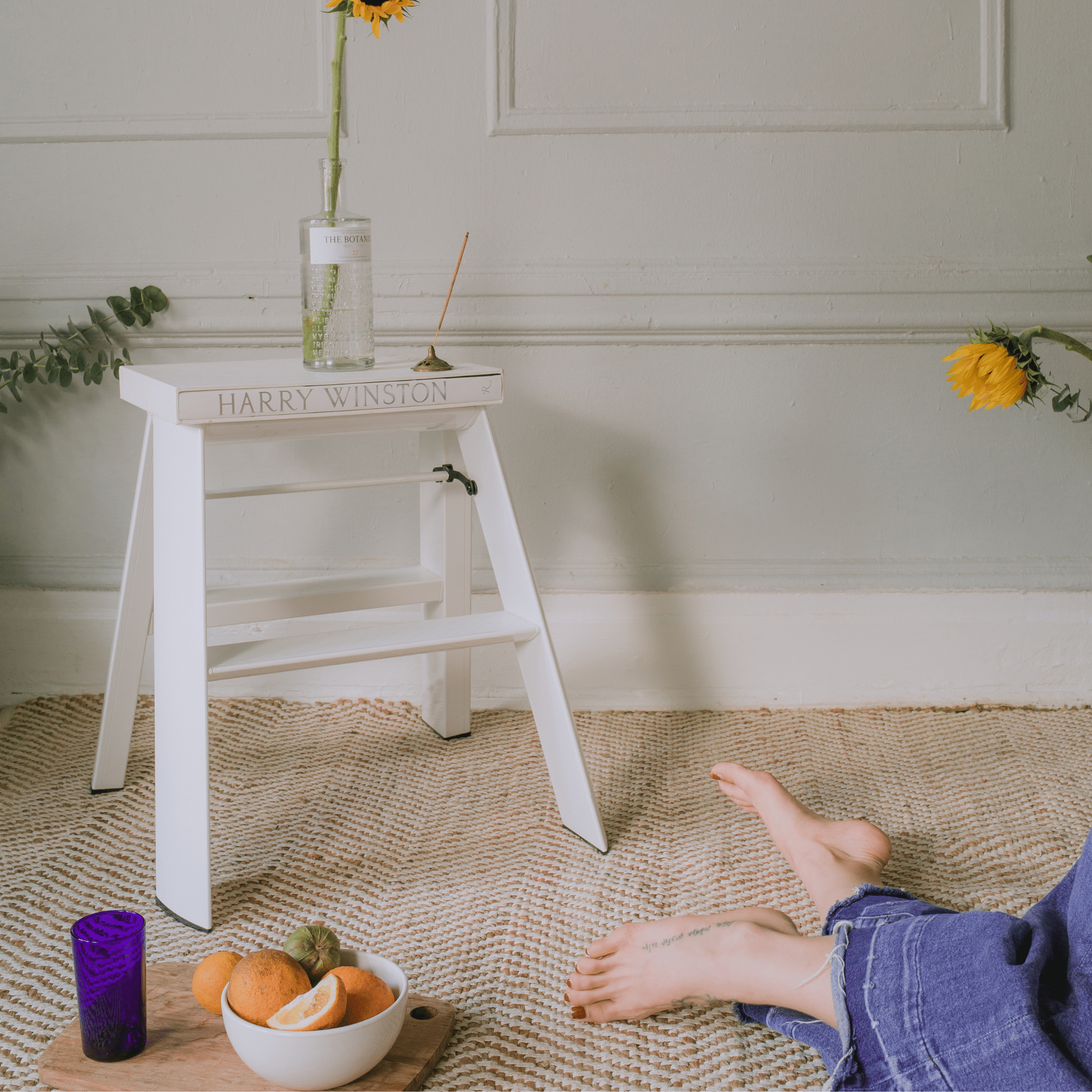 De witte afwerking benadrukt het minimalistische karakter van de ladder. Hij gaat naadloos op in lichte en moderne interieurs, en vormt tegelijk een stijlvol contrast met donkere muren of houtaccenten.