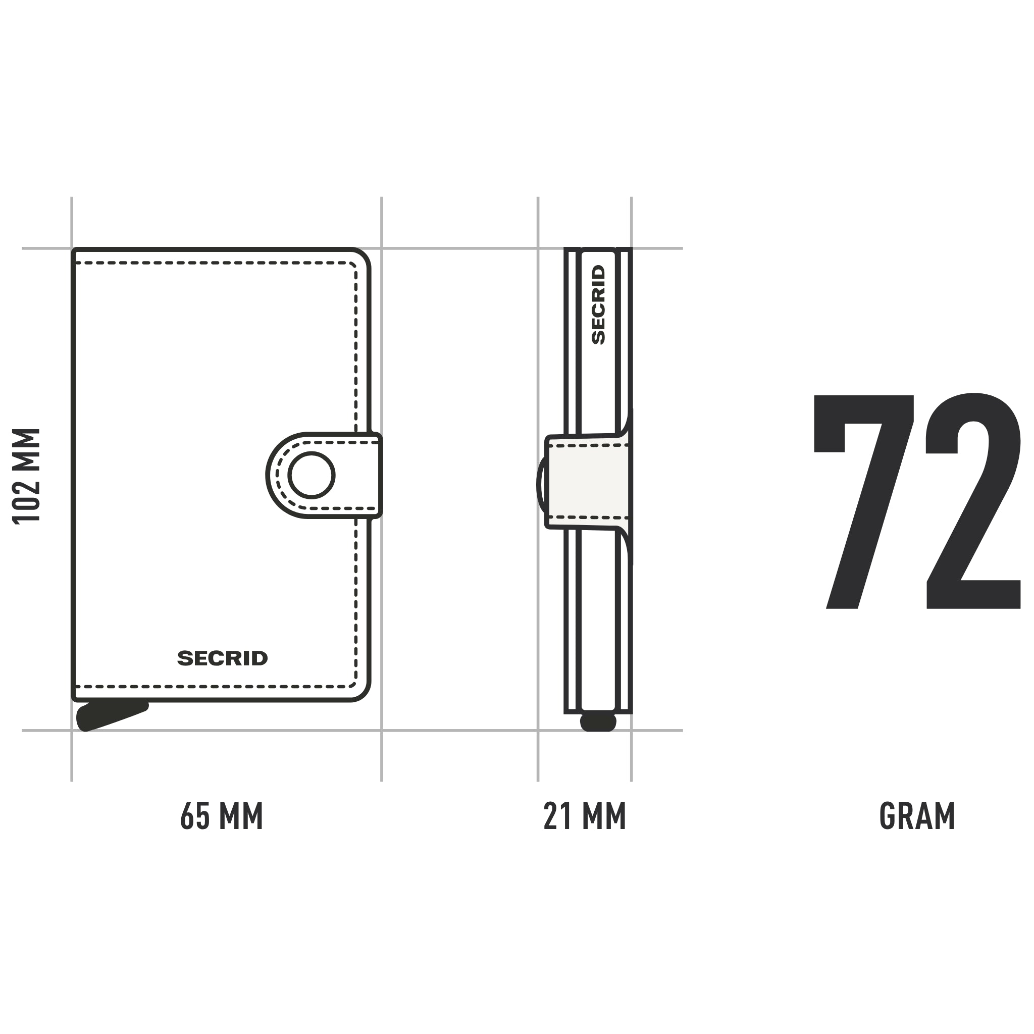 De Secrid Miniwallet Vintage Cognac Bruin is een compacte wallet met verrassend veel ruimte. Dankzij de aluminium Cardprotector schuif je je kaarten met één beweging omhoog en zijn ze goed beschermd tegen buigen, breken en ongewenste draadloze communicatie (RFID-safe).