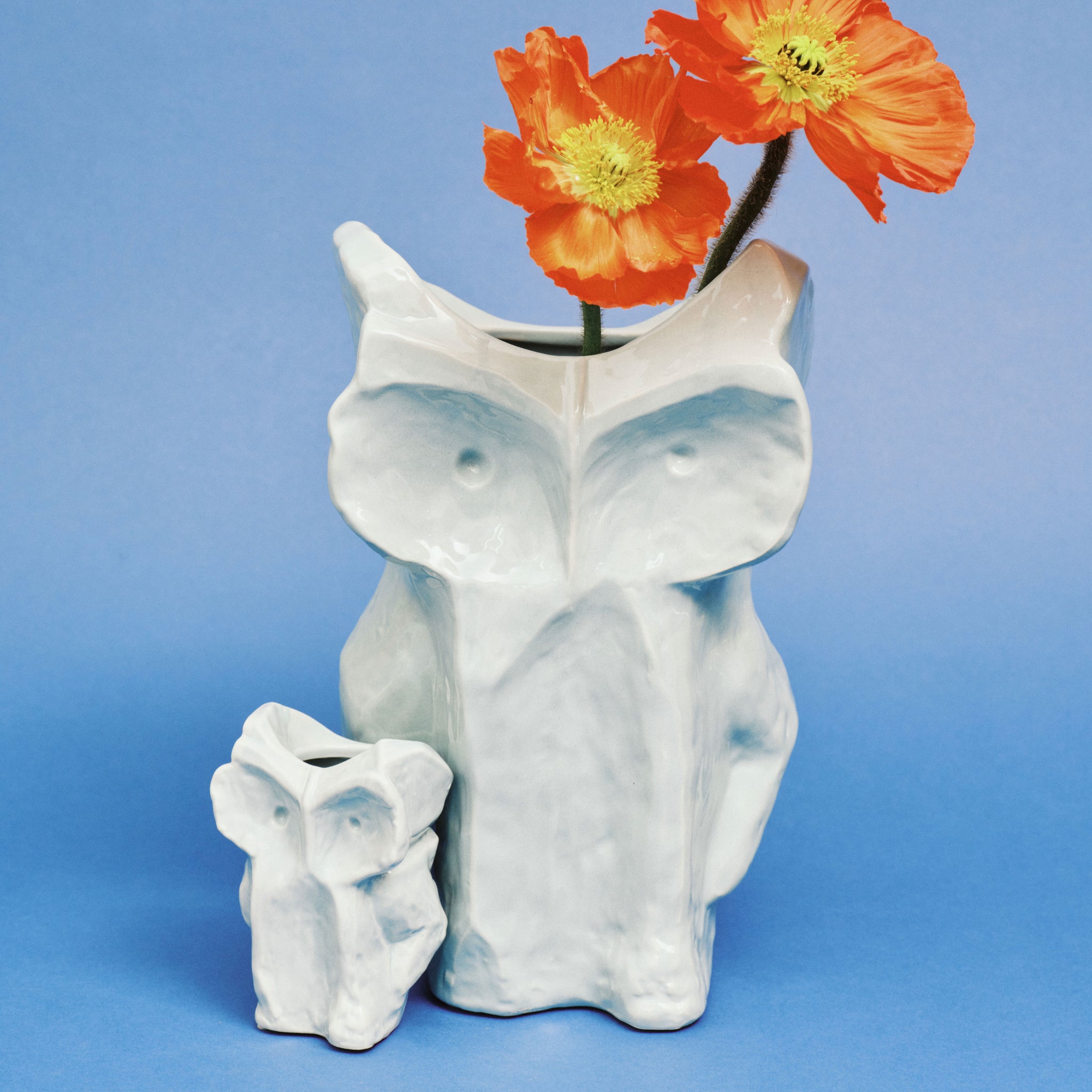 De uil vaas After Midnight van Serax in lichtblauw is een sculpturaal ontwerp van het Italiaanse modehuis Marni, gekend van de Midnight Flowers collectie.