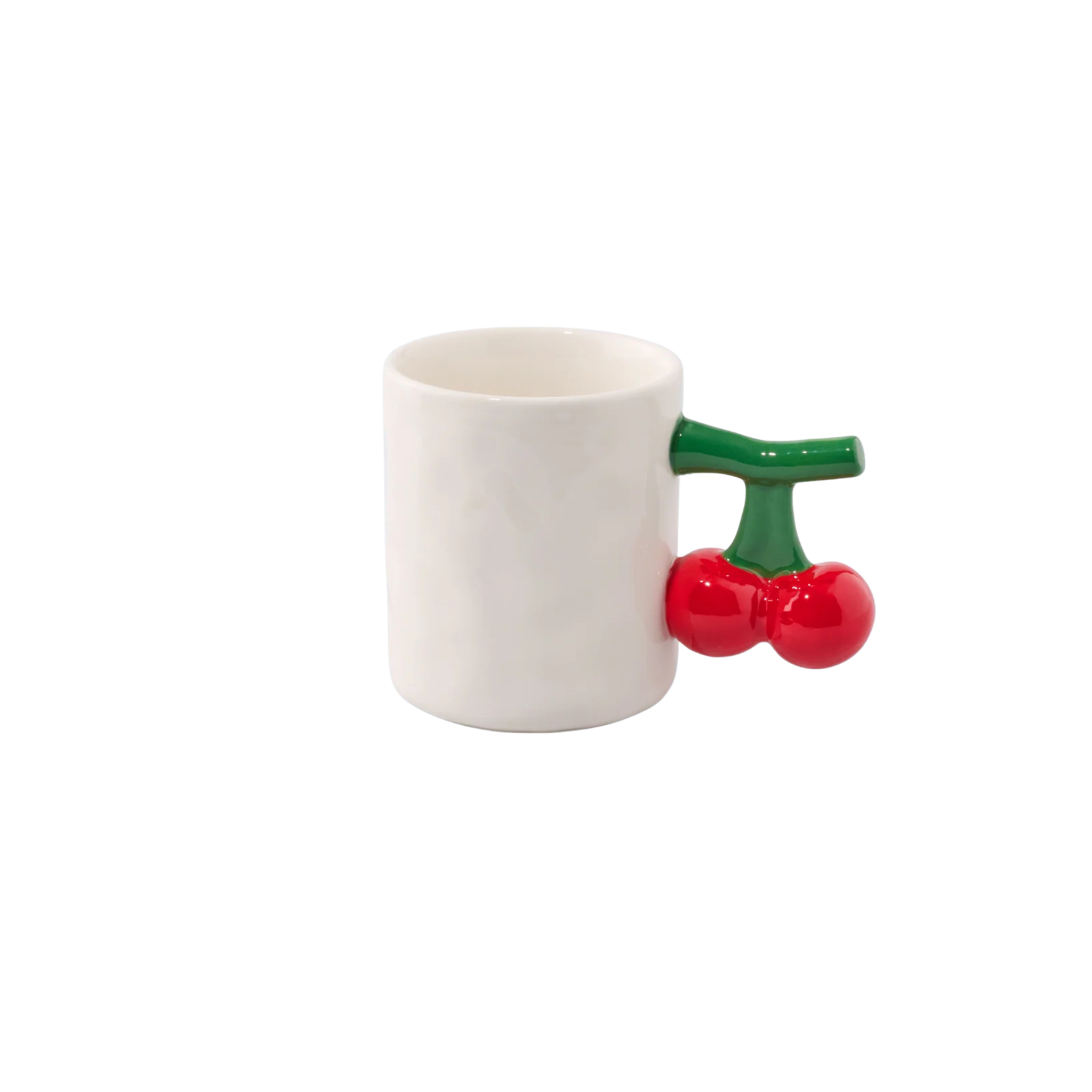 The Fluid Market Cherry Mug keeps it simple with a playful twist. The white mug is finished with a cherry-shaped handle, a small detail that immediately catches the eye.
