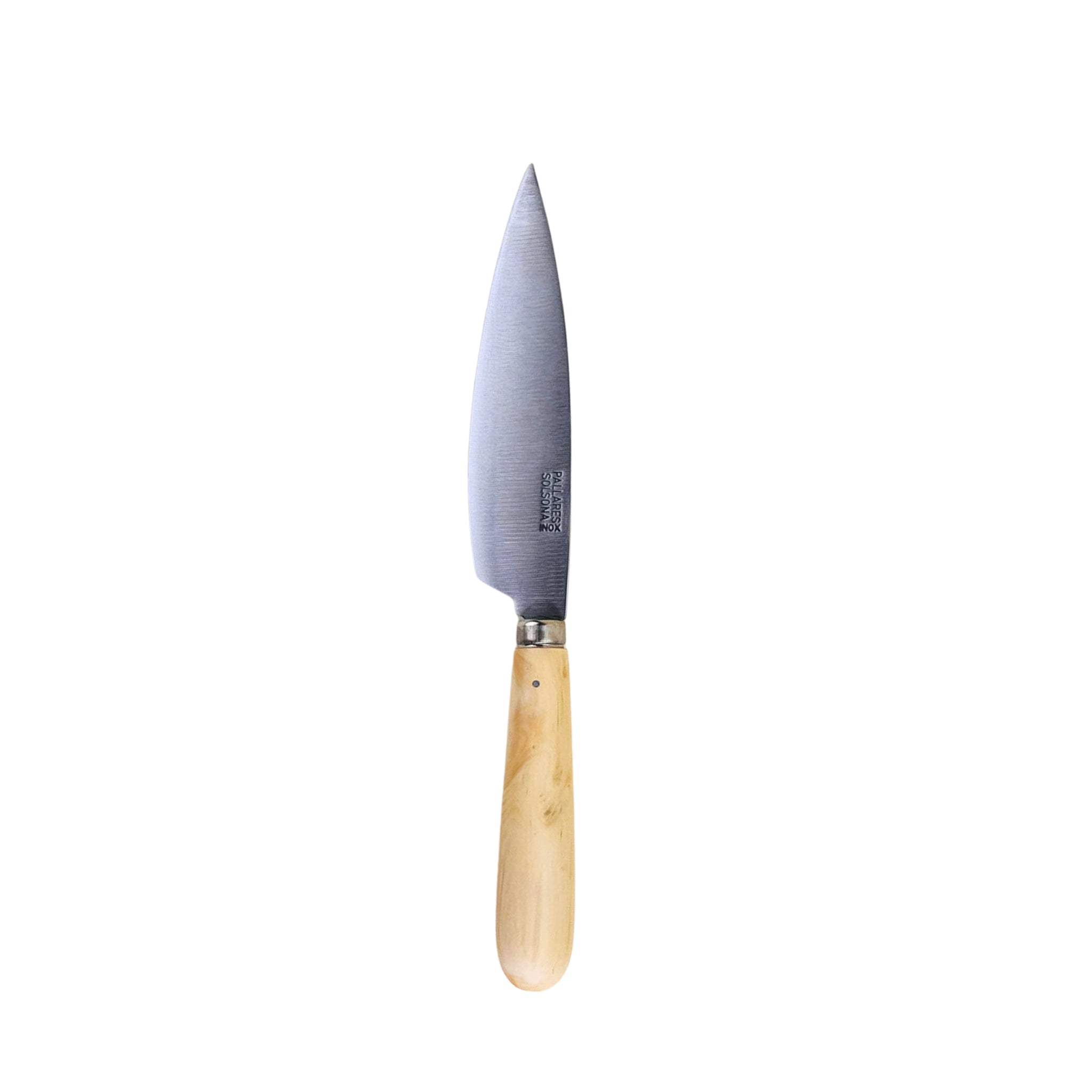 The Pallares Solsona Kitchen Knife Boxwood (wide) 16 cm is a traditional handmade knife from Solsona, Spain, where the family business Pallares has been producing high-quality knives since 1917.