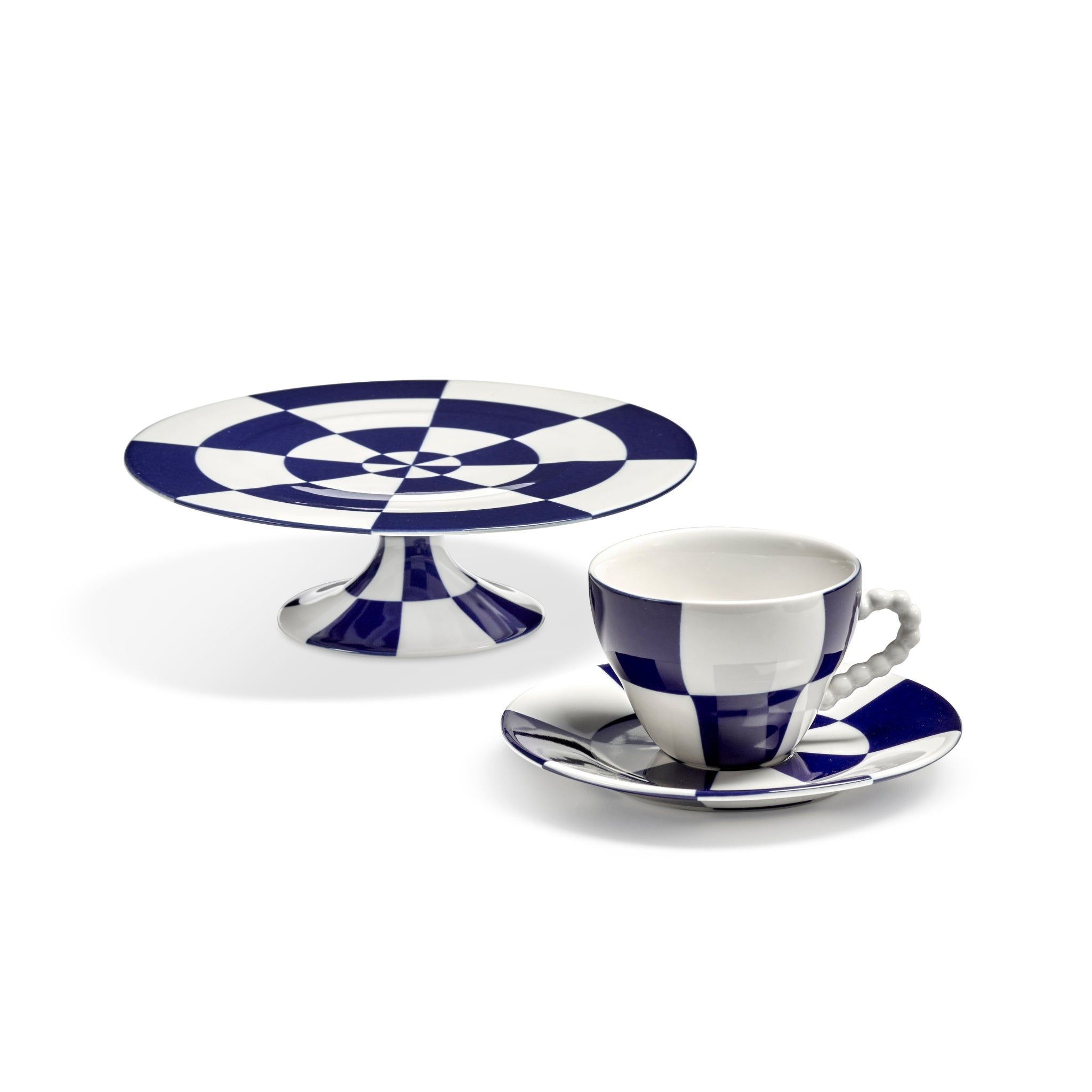 De koffiekop met schotel Fête Des Bêtes van Serax in blauw en wit is ontworpen door Antwerpse juweelontwerpers Wouters & Hendrix en brengt een artistieke toets aan elk koffiemoment.