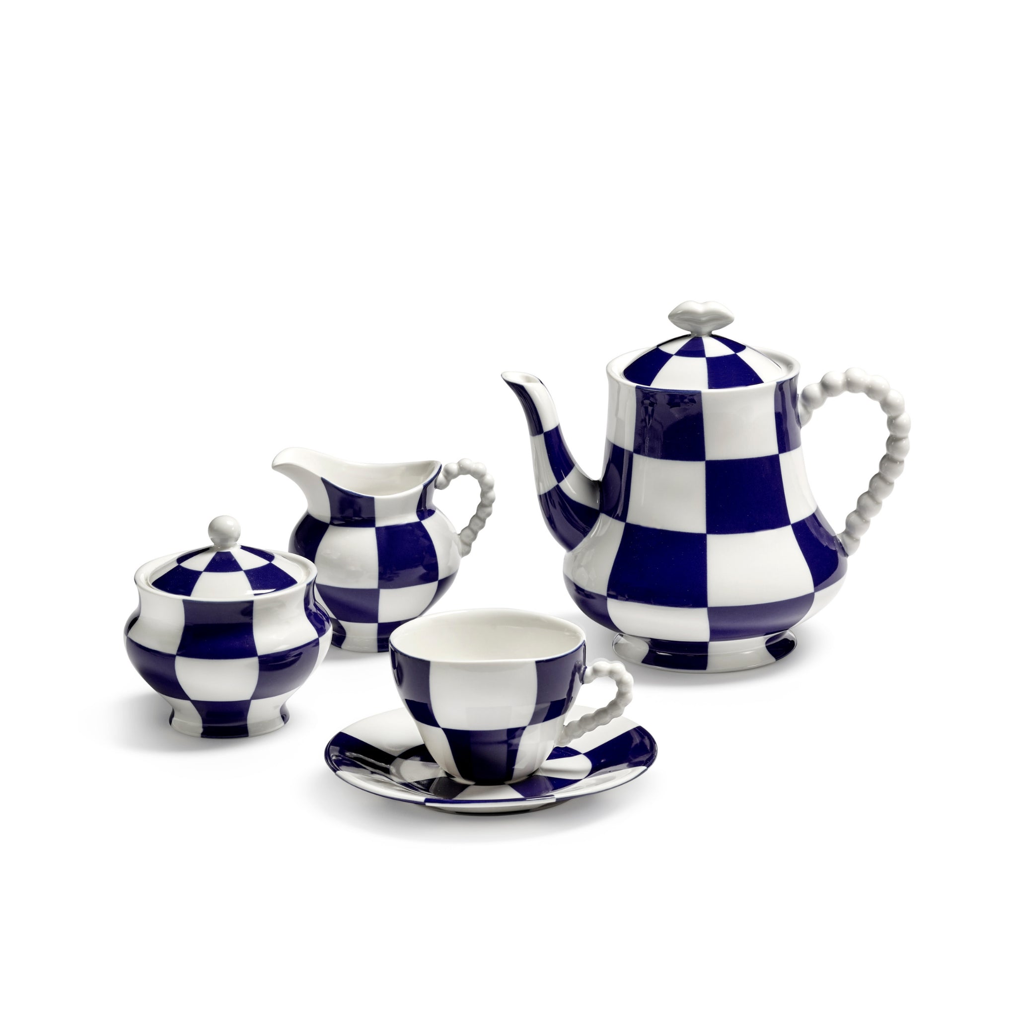 Het melkkannetje Fête Des Bêtes van Serax in blauw en wit is ontworpen door Antwerpse juweelontwerpers Wouters & Hendrix en voegt een artistiek accent toe aan elk koffiemoment.