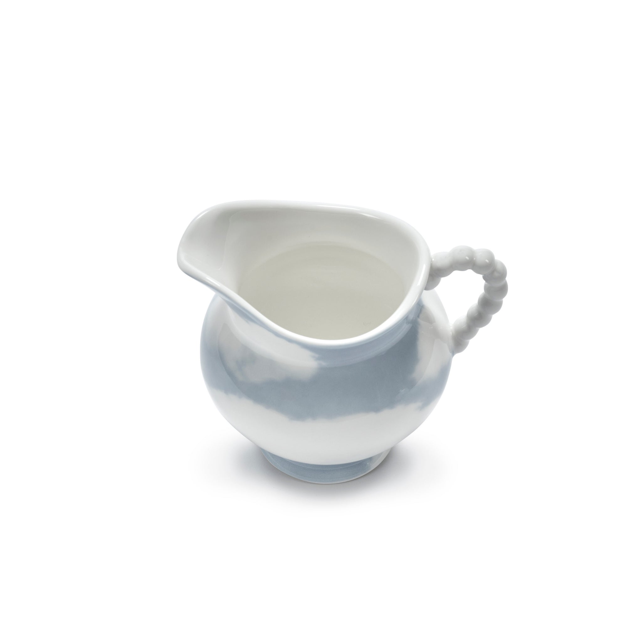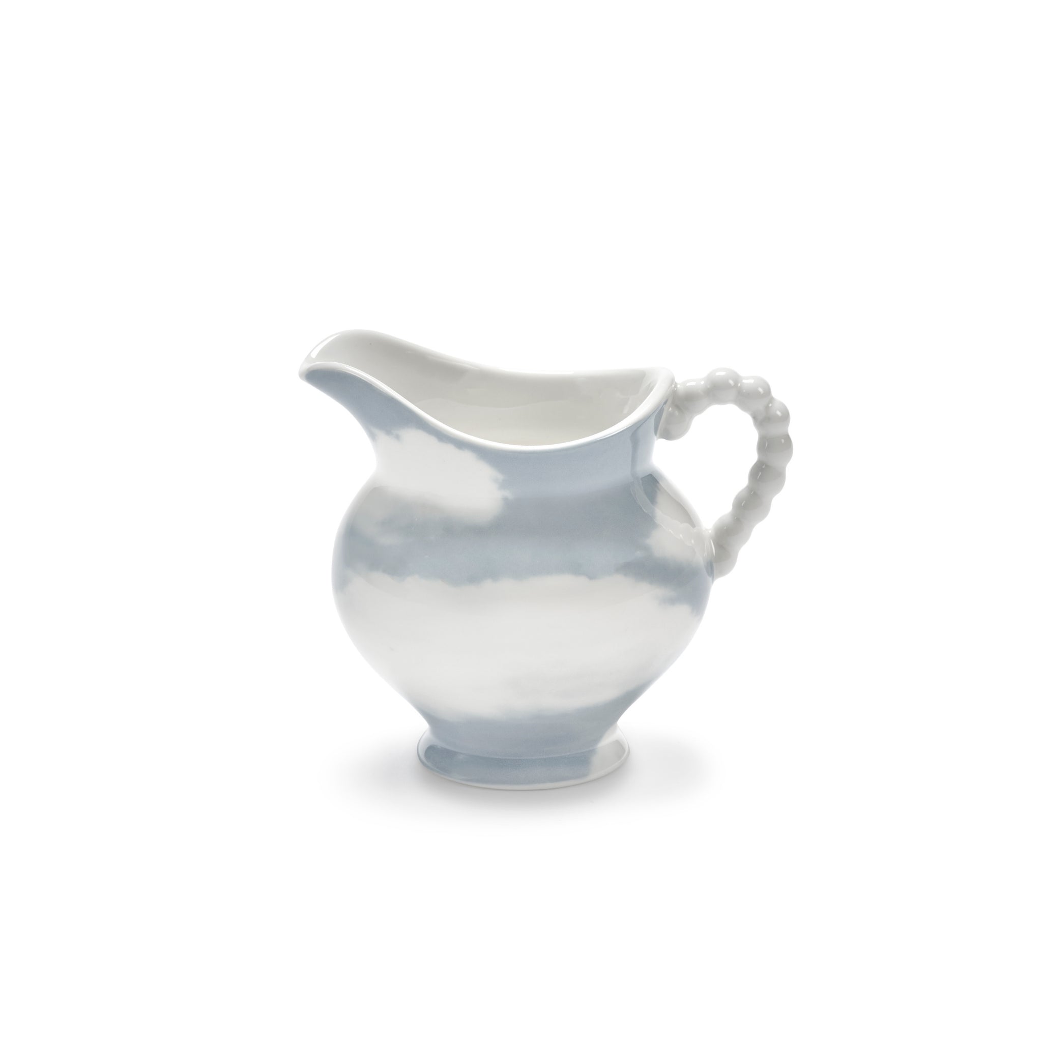 De zachte wolkenillustraties geven het ontwerp een speels en surrealistisch karakter, waardoor dit kannetje een subtiele blikvanger vormt op tafel.