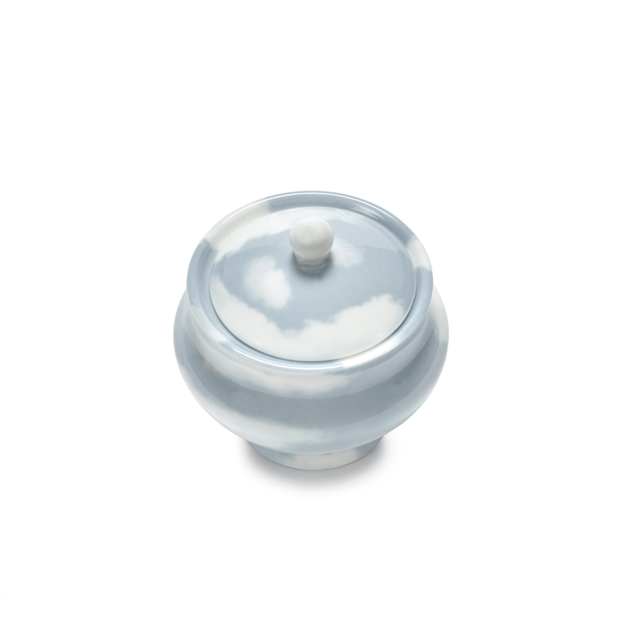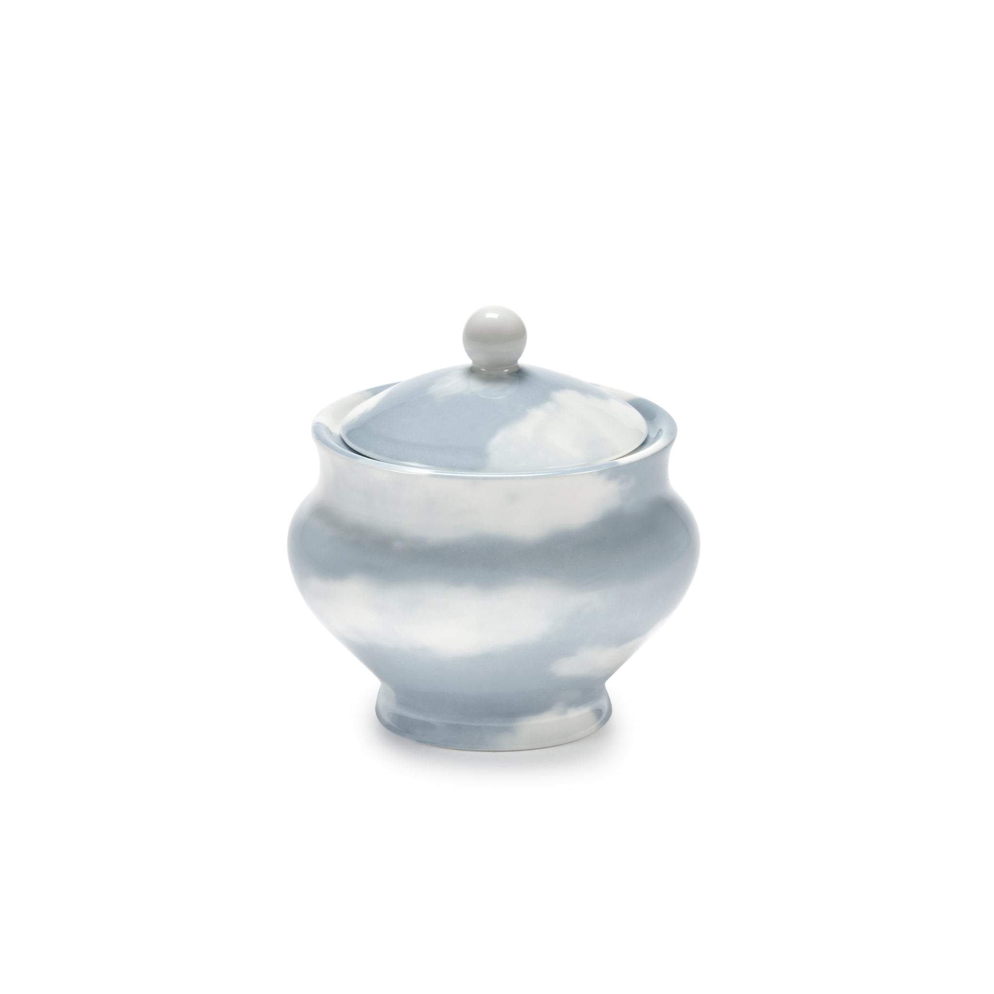 Het subtiele wolkenmotief zorgt voor een dromerig accent en geeft deze suikerpot een eigenzinnig karakter binnen de serviescollectie.
